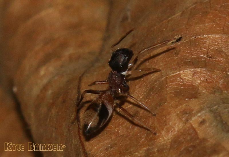 Unidentified: A0073Probably Myrmarachne sp.Ant Mimic Jumping SpiderIf you have any information regarding the Species or Genus this specimen belongs to, please Contact Us with your suggestions. We appreciate any assistance in keying out any specimen on this website! |
